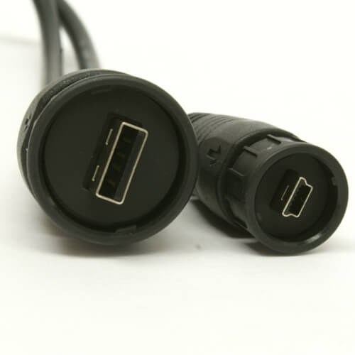 Waterproof USB Cable - A to Mini-B Building a new product? Trying to find a solution that's waterproof? This cable is right for you. It mates up to our female connector that's perfect for easy installation into your device. Our waterproof connectors are sealed and ready to be installed into your case, controller, brief, tote, detonator, or anything else you might be installing it on.