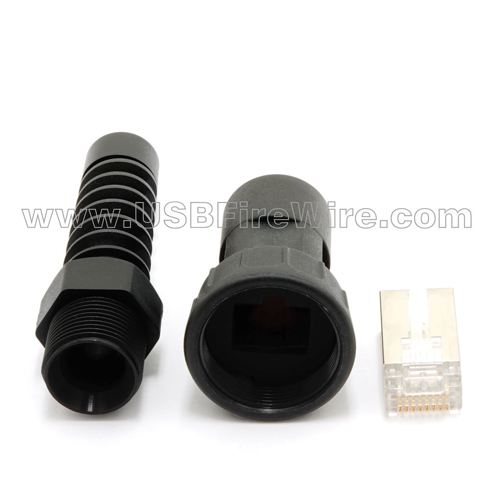 RJ45 Field Installable Connector This connector kit will allow you to turn your existing RJ45 connector into a waterproof connector that can seal to IP67 when connected to one of our female panel connectors. It's easy to install, and the crimp connector is included. Non-rusting RJ45 Connector From the picture, you can see that we use a plastic housing. It's a nylon connector that's great for marine or other wet applications. It's great for use in environments, like boats, ships, or manufacturing environments.
