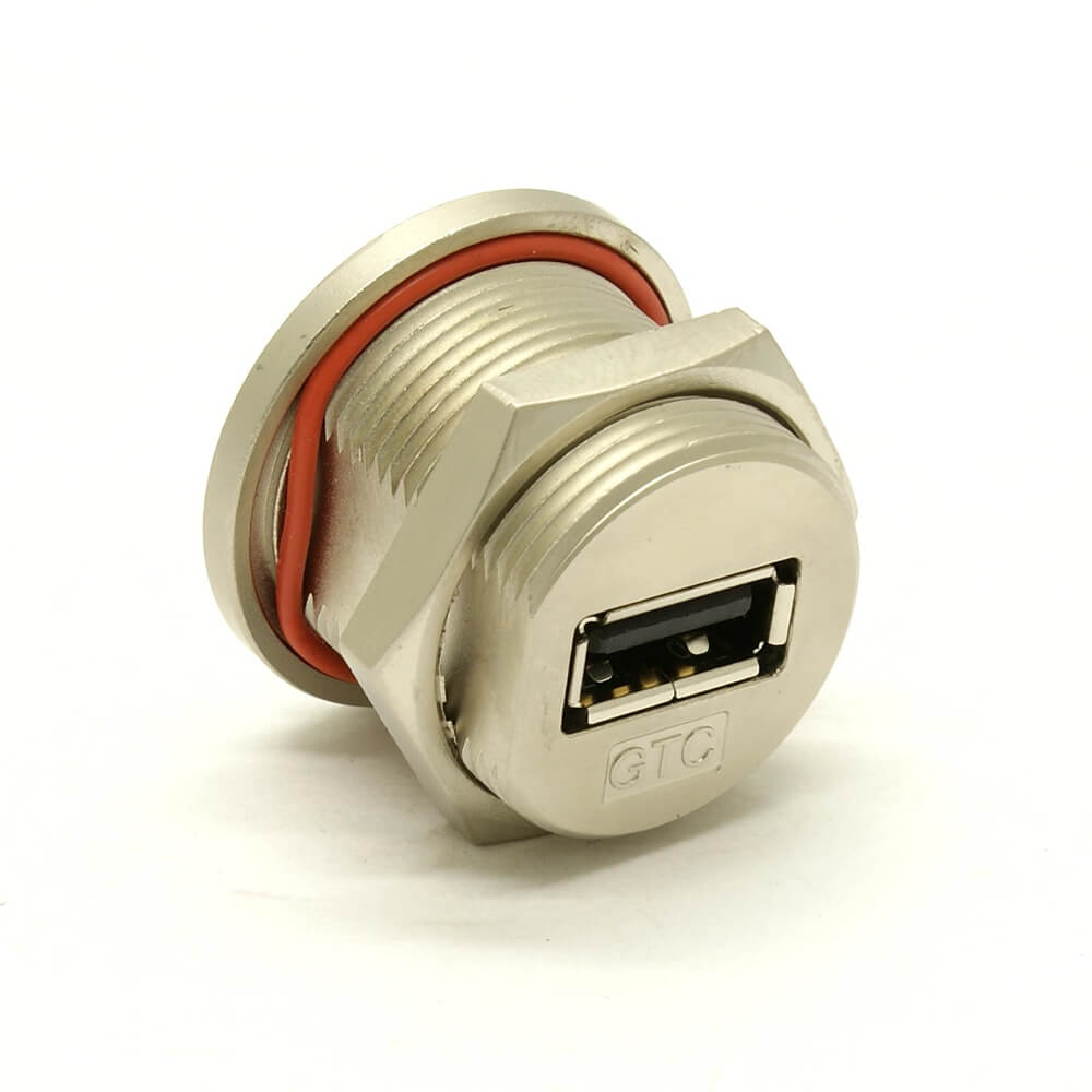 USB Waterproof Connector Building a new product? Trying to find a solution that's waterproof? This panel mount adapter could be right for you. It has a female mating connector that's perfect for easy installation into your device. Our waterproof connectors are sealed and ready to be installed into your case, controller, brief, tote, detonator, or anything else you might be installing it on.