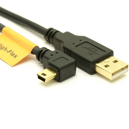 High-Flex Right Angle Mini-B USB This cable is built for robotics and industrial uses, where a constant flexing is needed, and regular USB 2.0 cables just won't keep your machine working well, year after year. Our cable is built with an industrial setting in mind. Quality workmanship, commercial grade materials, and up to a 10,000,000 flex life make this cable a great choice. Drawings and specs available We make sure you get what you need. We have full drawings available of our products, including letters of compliance, and 3D Models.