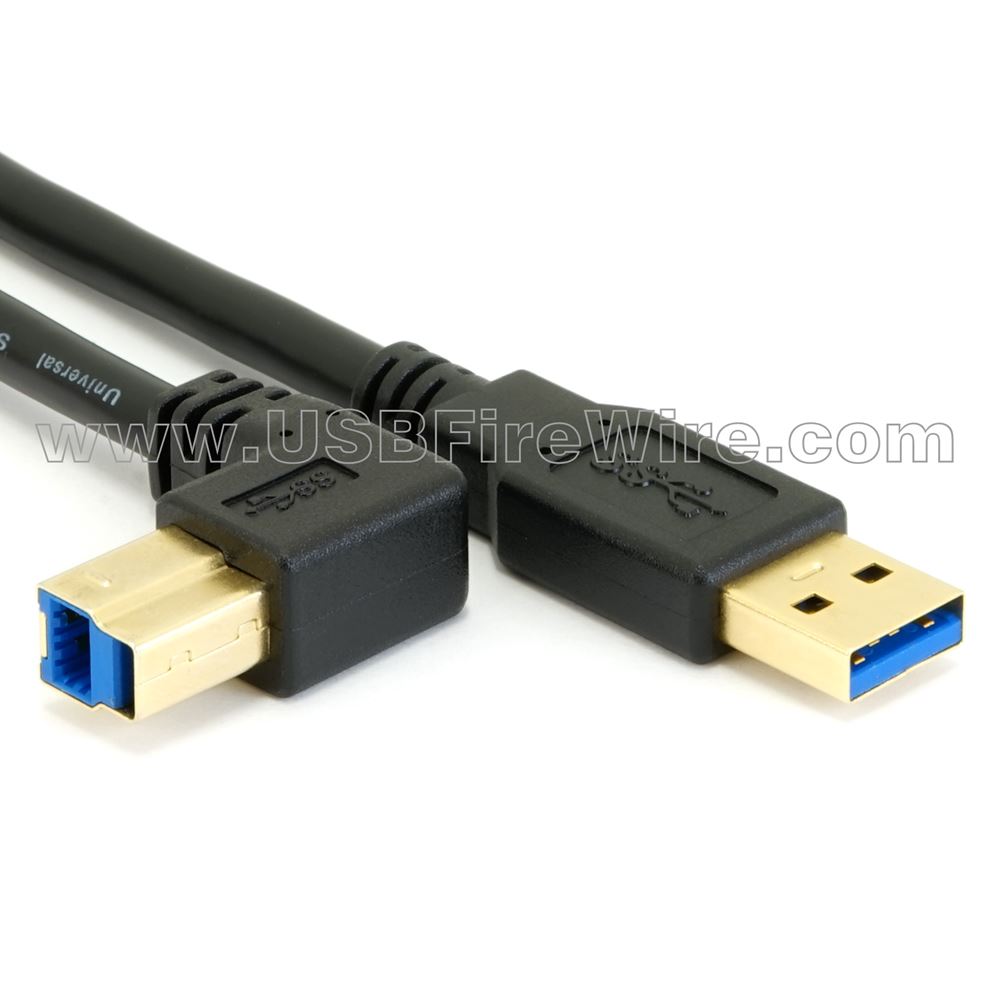 90 degree Up Angled Design This cable features an up-angled B-male design. This 90 degree angle can fit conveniently, and tightly against a surface, which can also help to stop breakage. If you're needing to see how small it is, please feel free to use our toolbar to request a drawing, or 3D model. We also offer quantity discounts on this product. This can also be requested via our toolbar. Short USB 3.0 Cable Length With cables as short at 10 inches in total length, this cable can fit nicely on your desk without making it cluttered. Sometimes a simple, short cable, or perfect length cable will do the trick. See our list of sizes for current availability. USB 3.0 Right Angle Cable The SuperSpeed USB 3.0 cable is currently the fastest design in USB history. It runs at 10 times the speed of USB 2.0, which means your pictures, videos, backups, databases can download at a much faster rate than ever before.